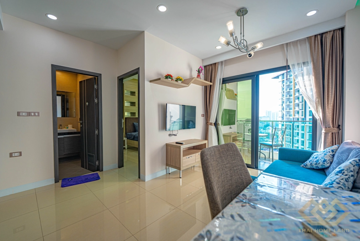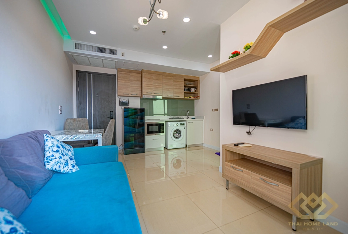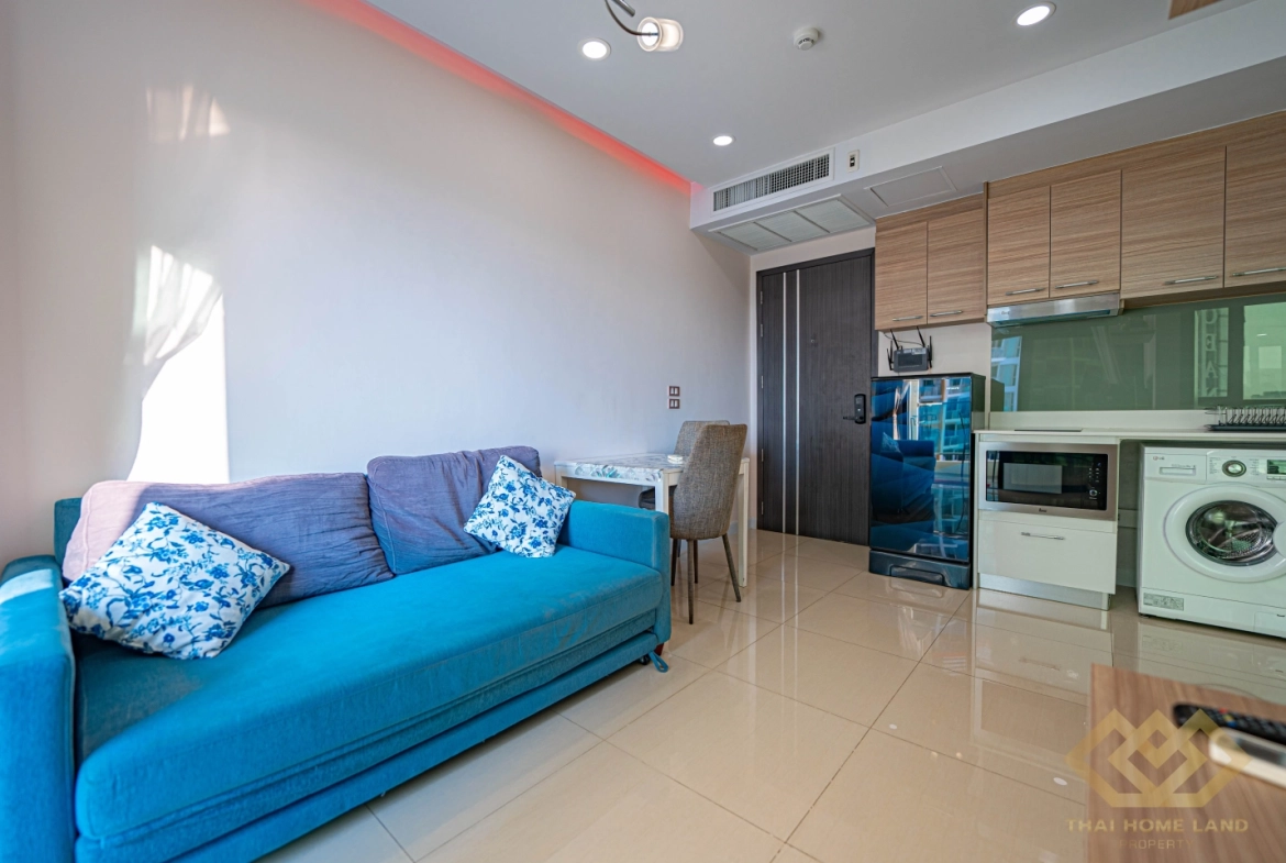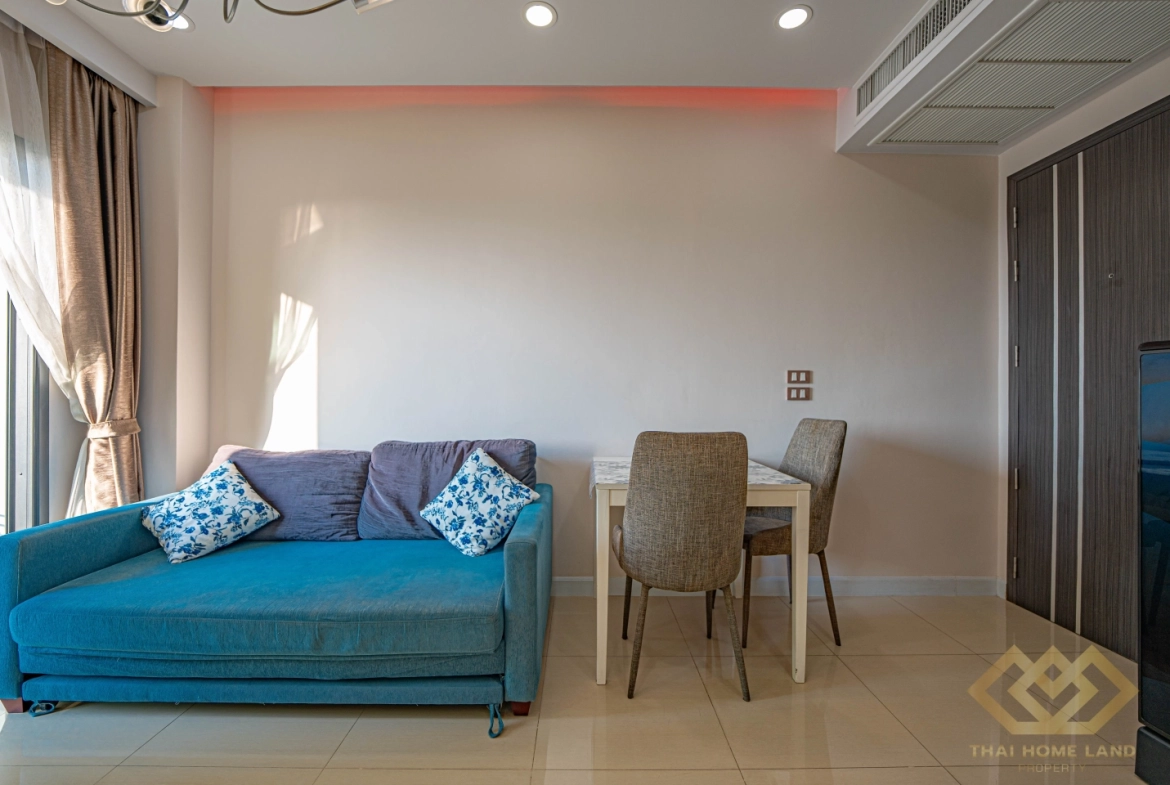 Live in comfort and style with this modern 1-bedroom, 1-bathroom condo located on the 12nd floor of the well-known Dusit Grand Condo View in Jomtien. With 34.97 sqm of thoughtfully designed space and stunning sea views, this unit is perfect for both homeowners and investors.