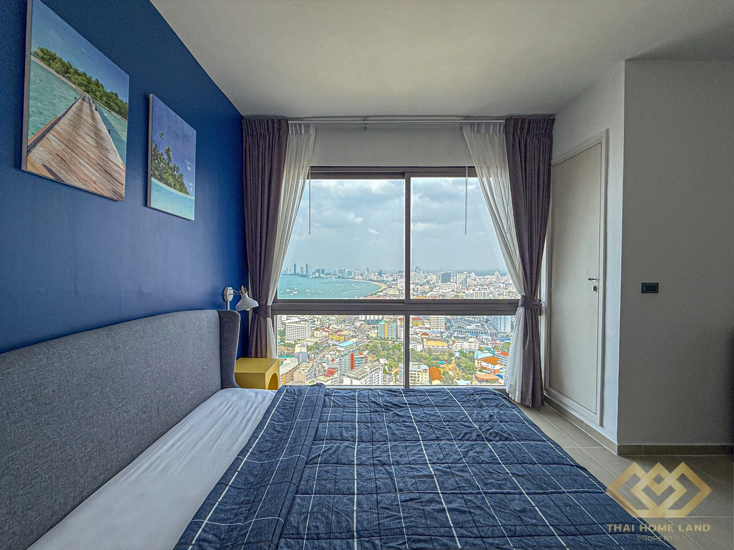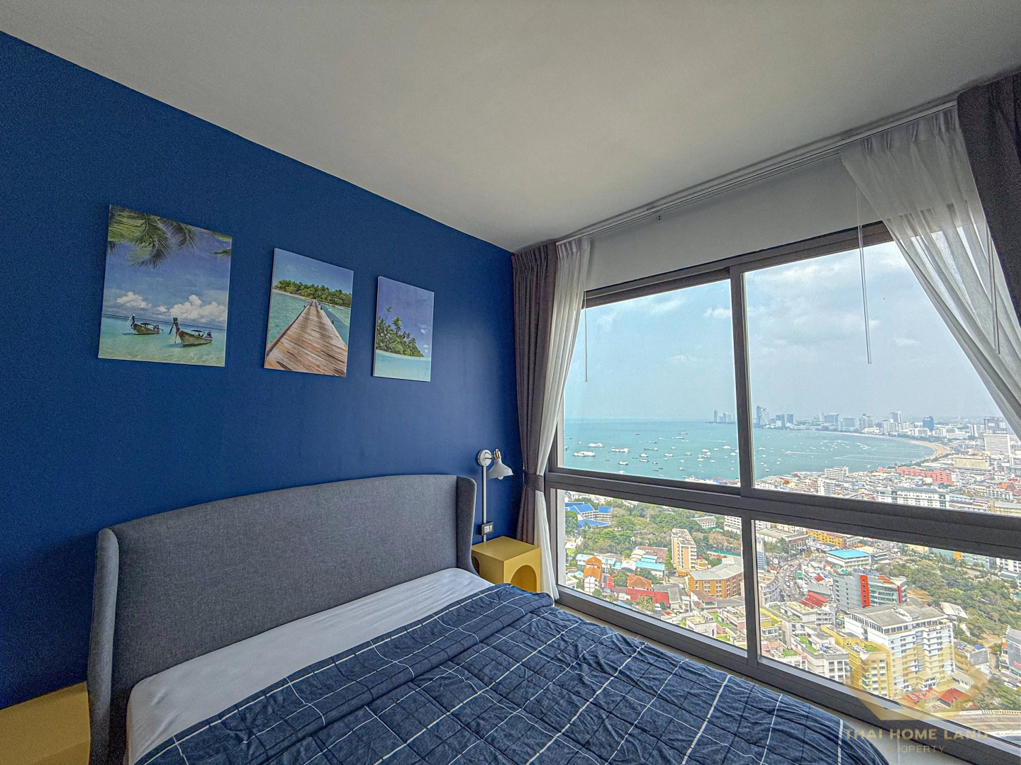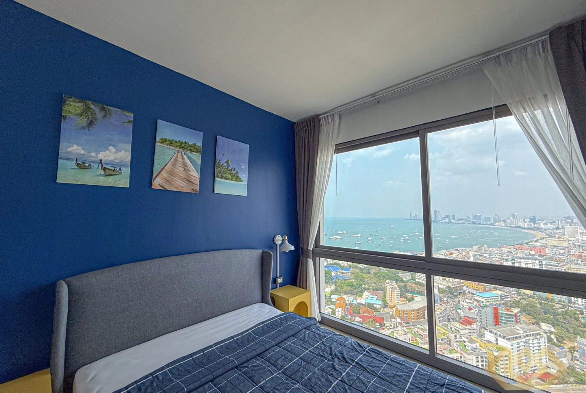 Modern and fully furnished studio condo for rent on the high 41st floor of Unixx South Pattaya, offering breathtaking sea views and city skyline scenery.